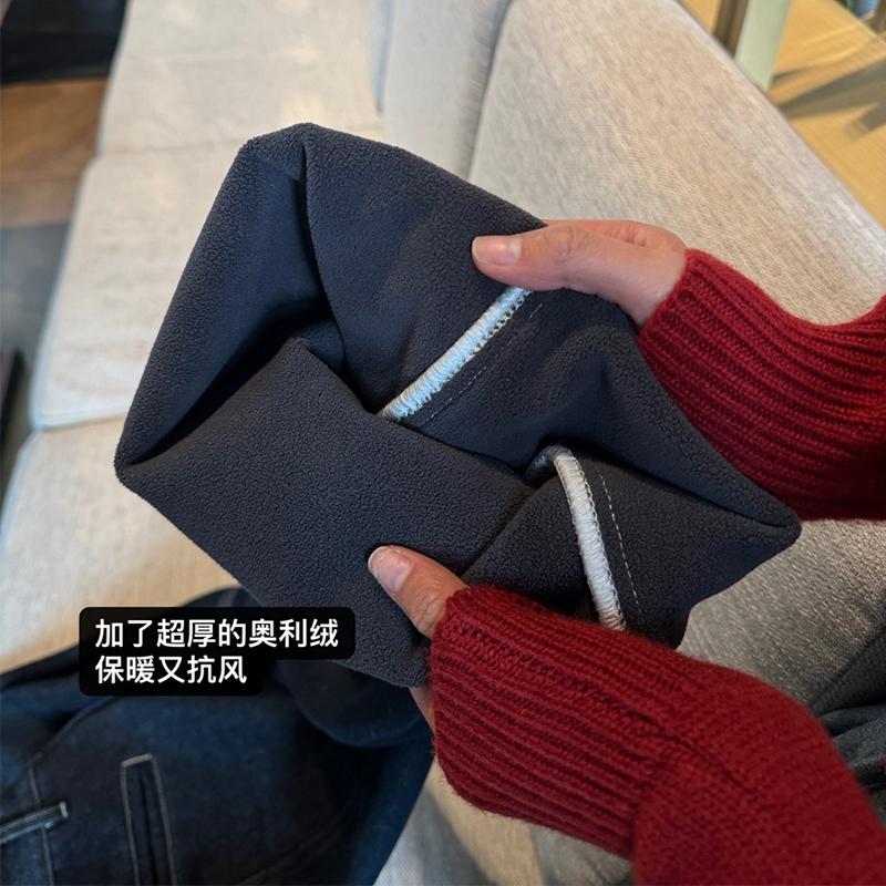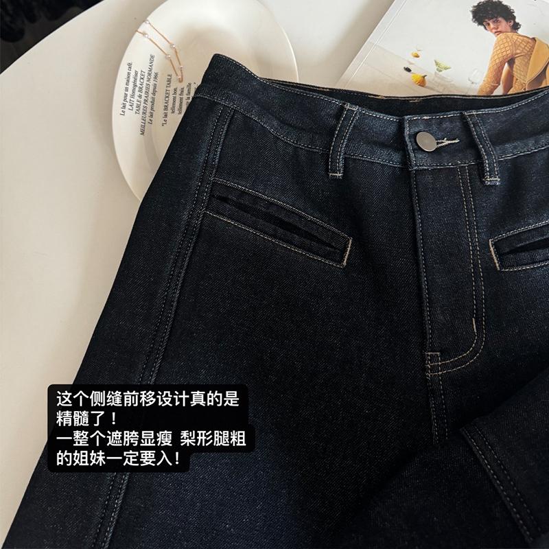 小个子高腰显瘦梨形身材遮胯牛仔裤加厚加绒弯刀阔腿裤