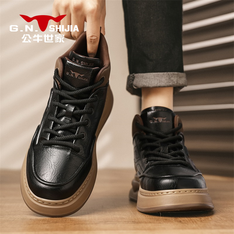 公牛世家男鞋冬季高帮运动休闲皮鞋男款厚底增高百搭工装马丁潮鞋