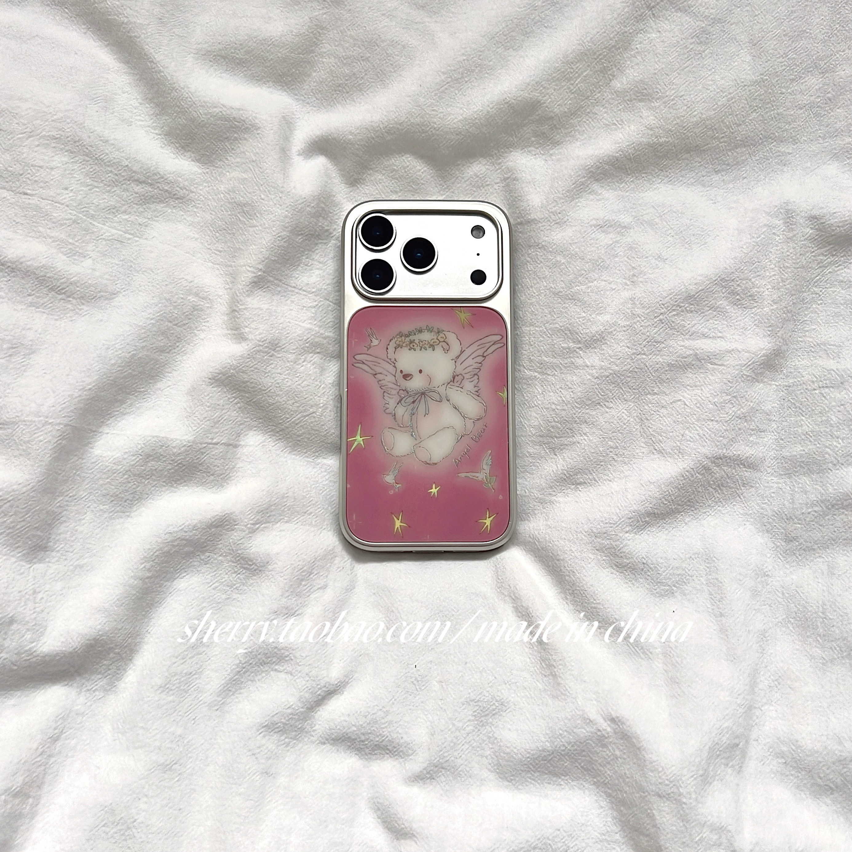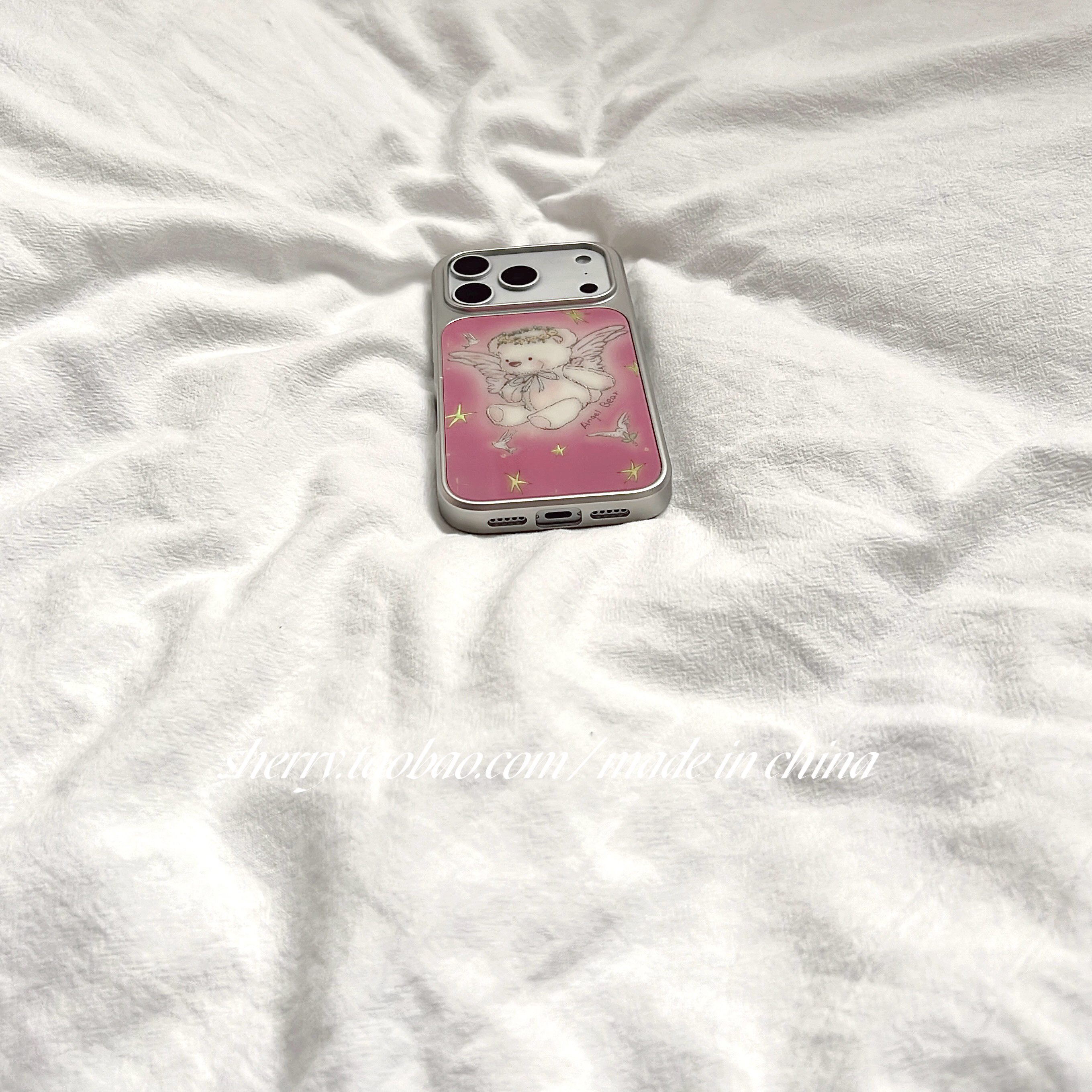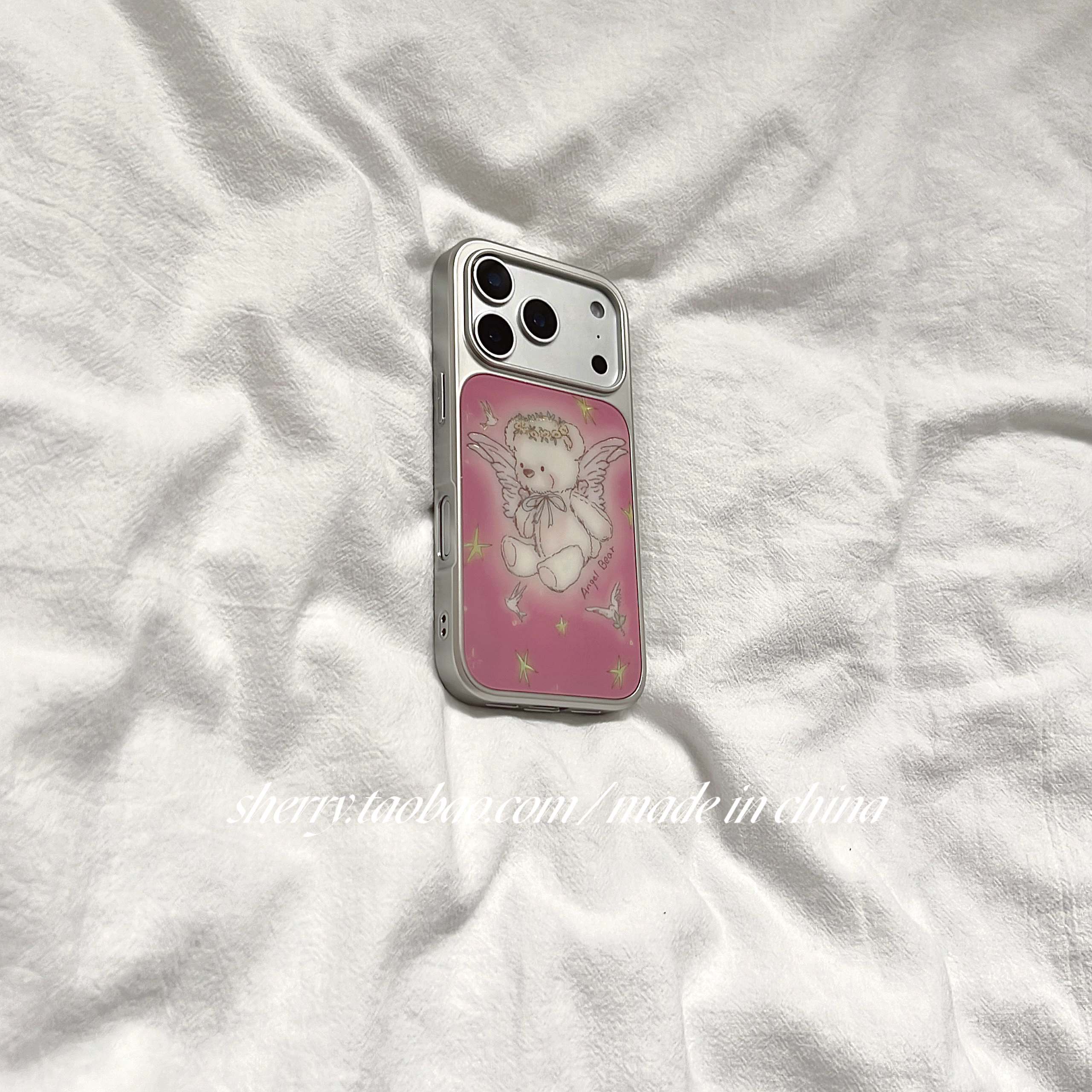 SHERRY*ins风粉色底天使翅膀小熊适用于苹果17ProMax手机壳iPhone16Pro小众少女心15简约14小清新卡通可爱萌
