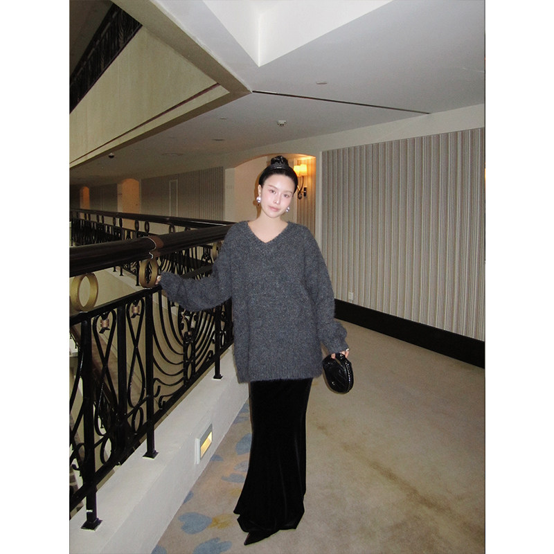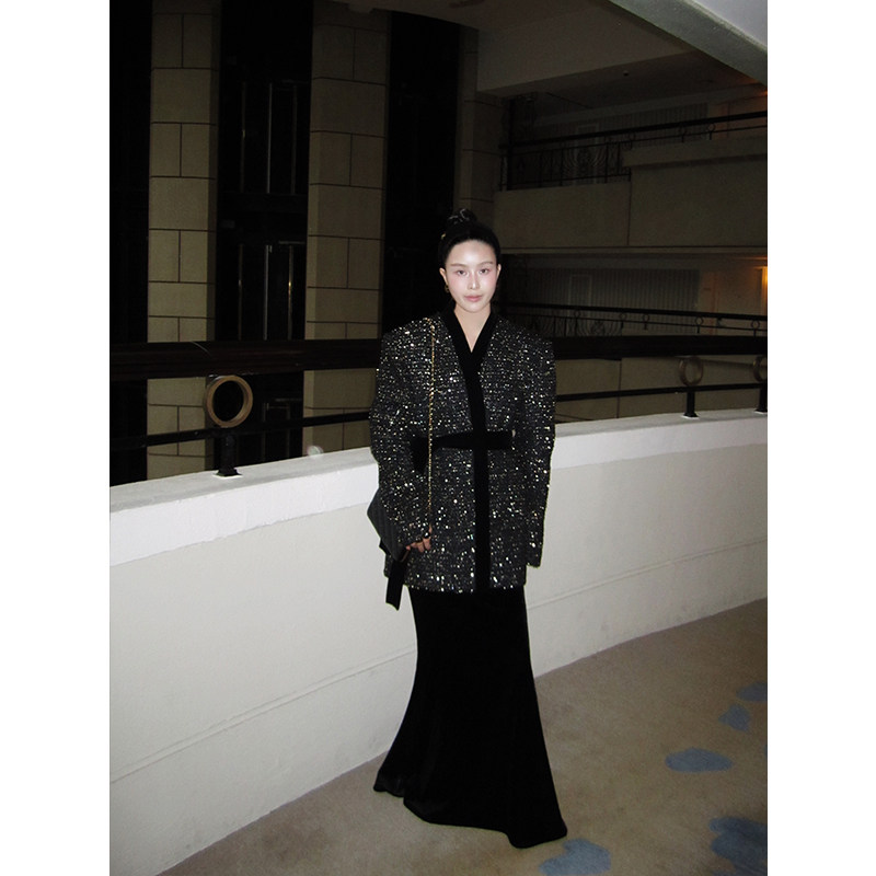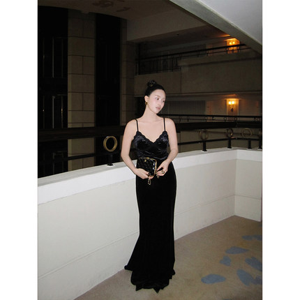 小众设计丝绒加厚鱼尾半身长裙2025秋冬新款百搭长款裙子女高级感