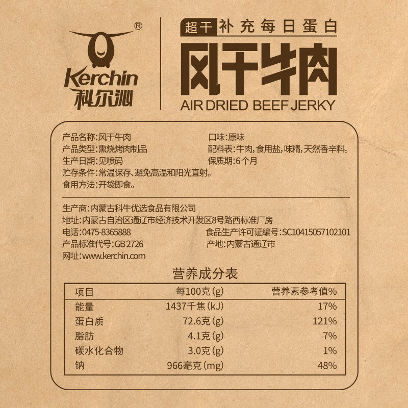 科尔沁 超干风干牛肉300g原味 内蒙特产办公室休闲零食肉干肉脯