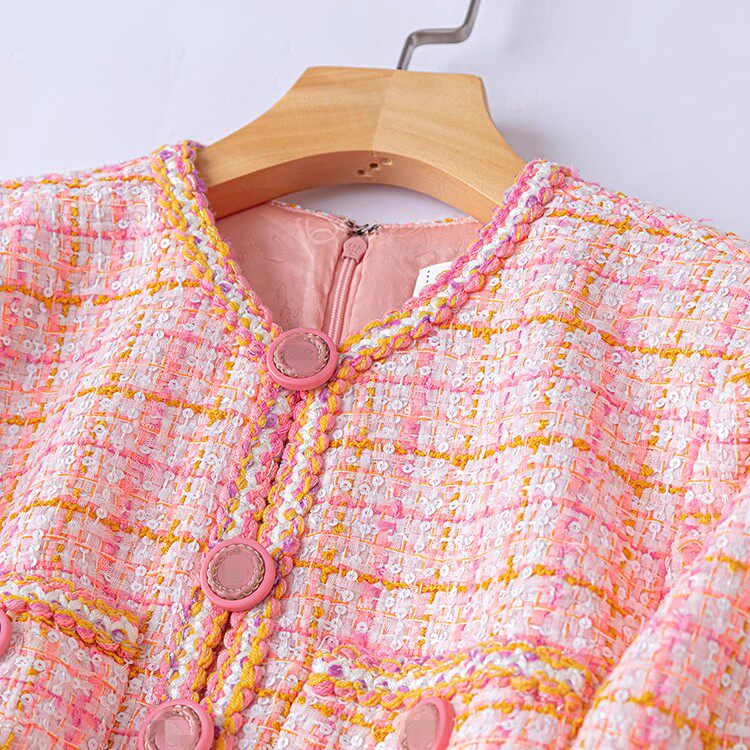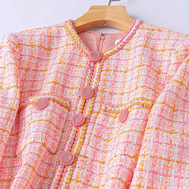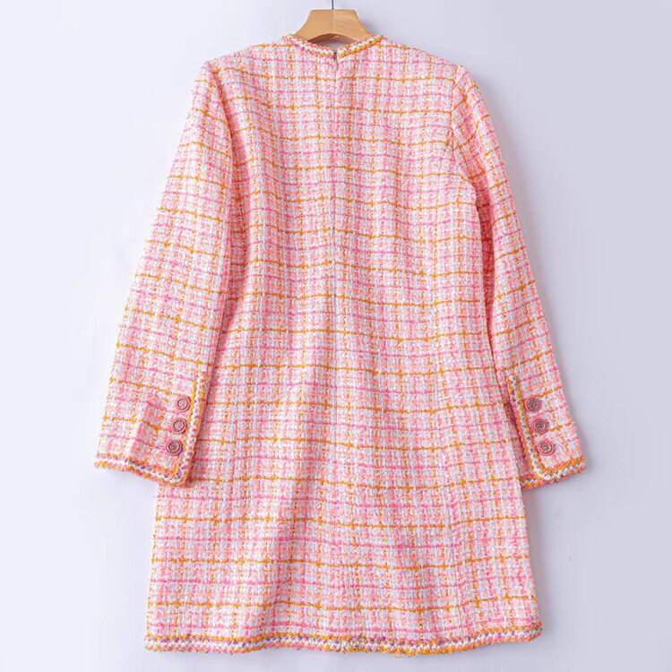 真丝女装长袖连衣裙女2024秋冬新款高端气质修身小香粗花呢裙子潮