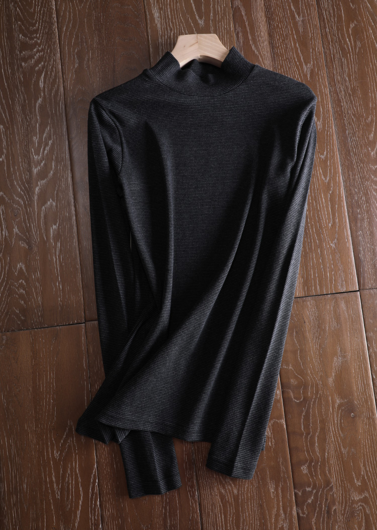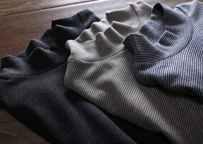 亲肤柔软 日系复古半高领细条纹打底衫女长袖纯棉T恤内搭修身大码
