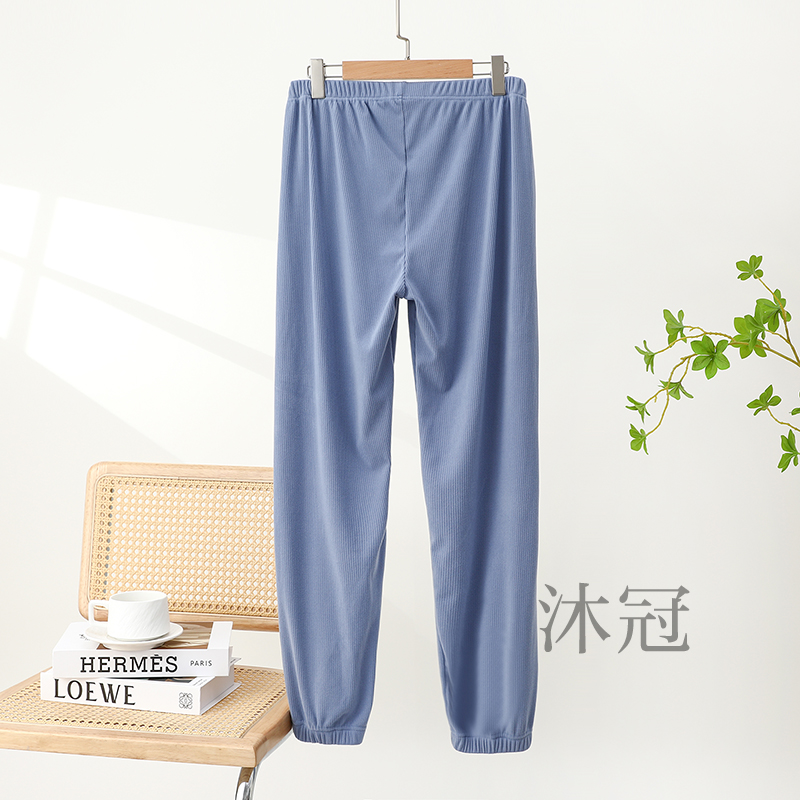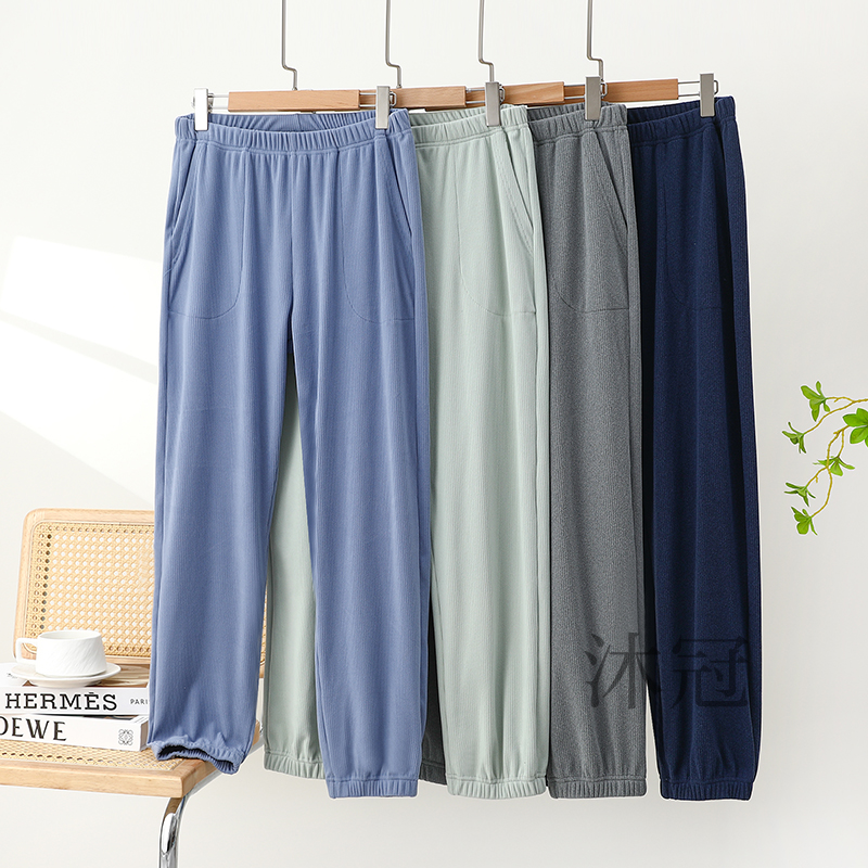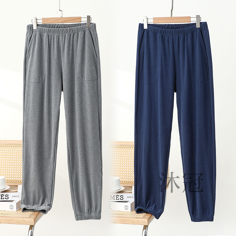 德绒睡裤男士2024秋冬保暖磨毛束脚家居裤中年宽松休闲可外穿长裤
