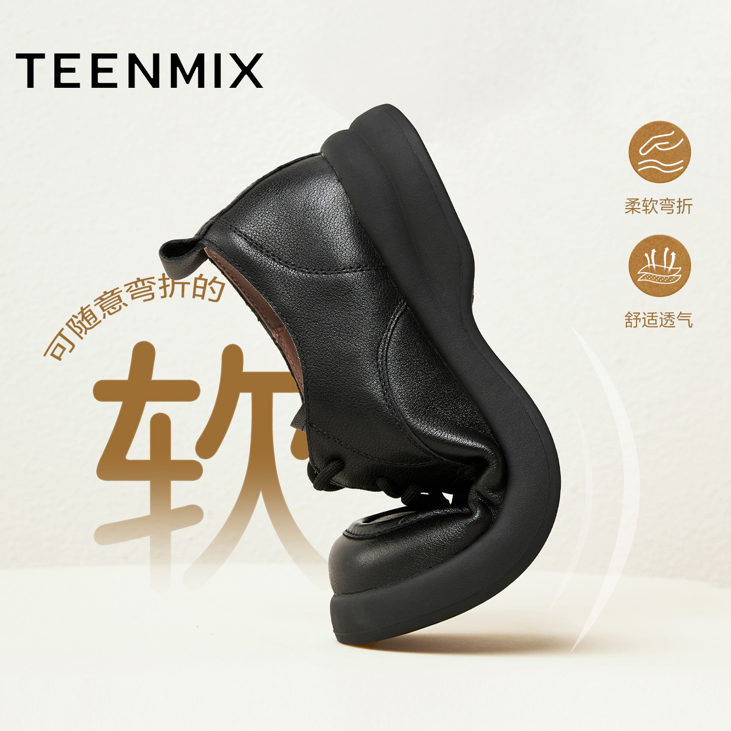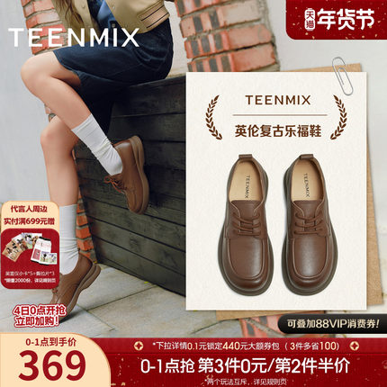天美意复古厚底圆头英伦小皮鞋女软底休闲单鞋2025秋新款KY018CM5