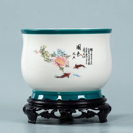 陶瓷中国风带底座绿植花盆