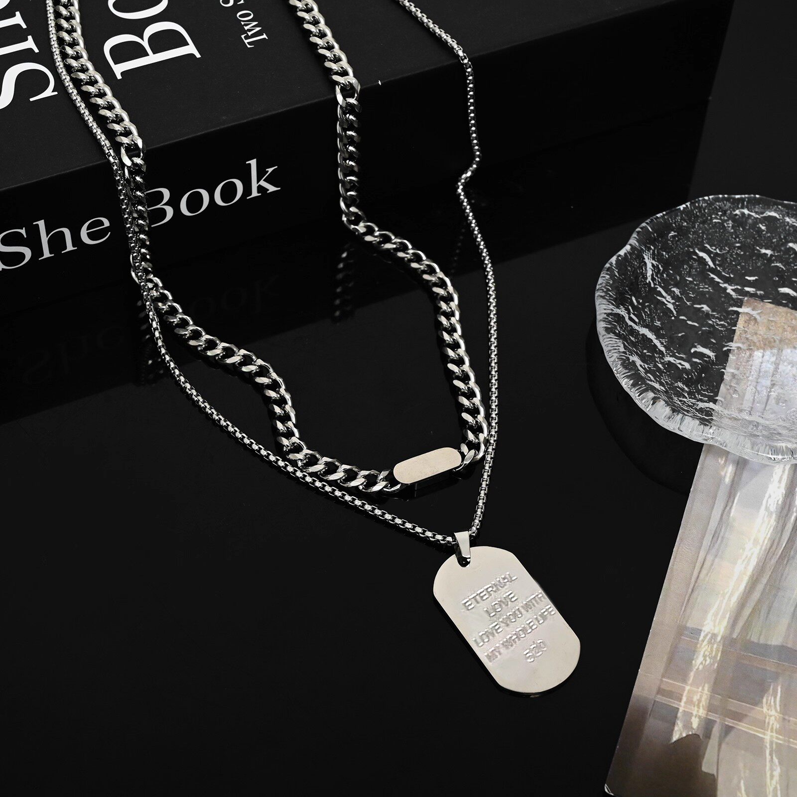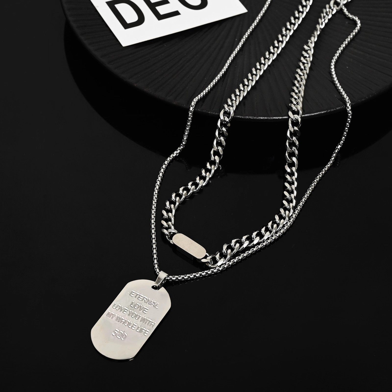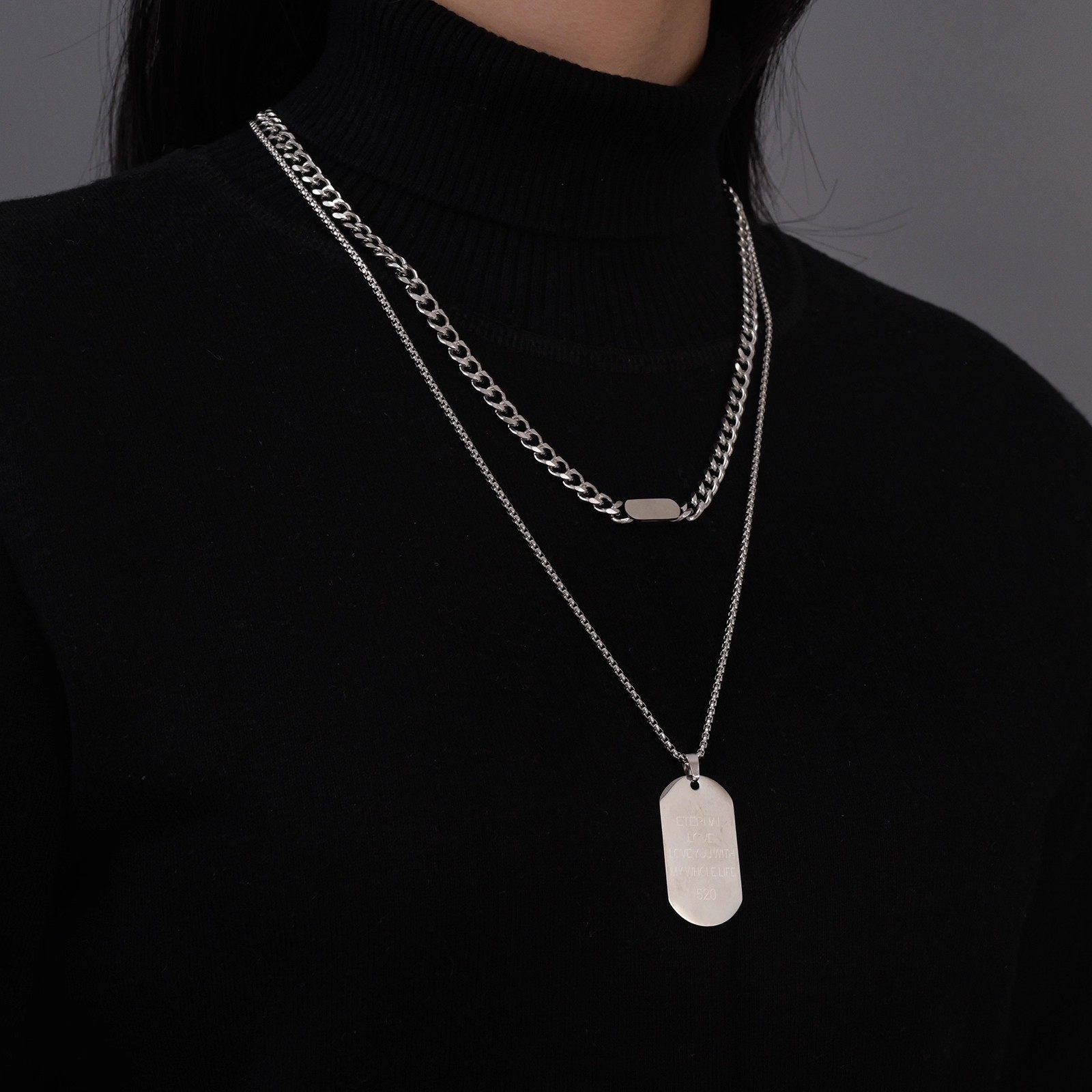 钛钢吊坠项链长款狗牌军牌毛衣链潮小众设计男士款卫衣链饰品男生