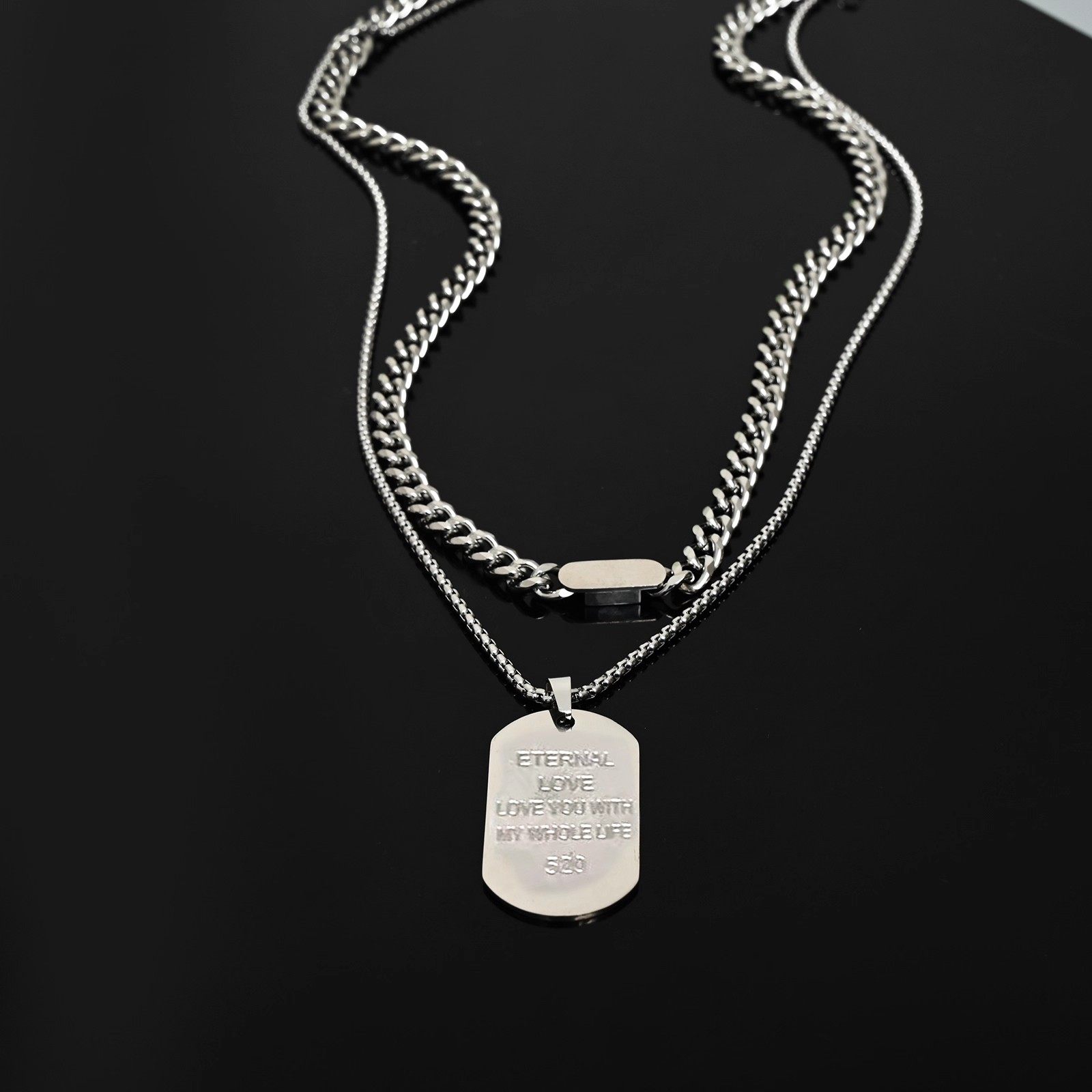 钛钢吊坠项链长款狗牌军牌