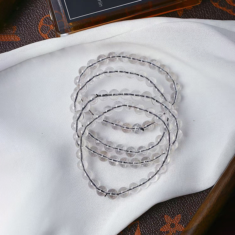 工厂处理 天然水晶银发晶圆珠单圈手链 女款水晶发晶手串饰品礼物