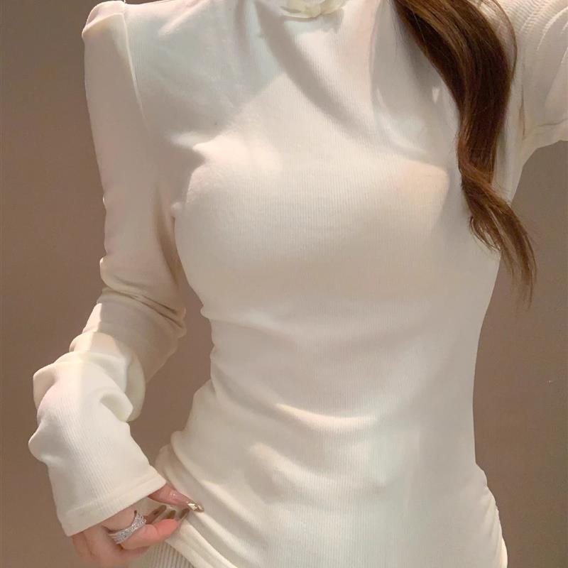 德绒内搭打底衫女装秋冬季2025新款修身长袖白色t恤女小立领上衣