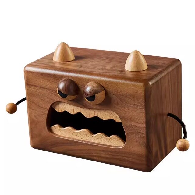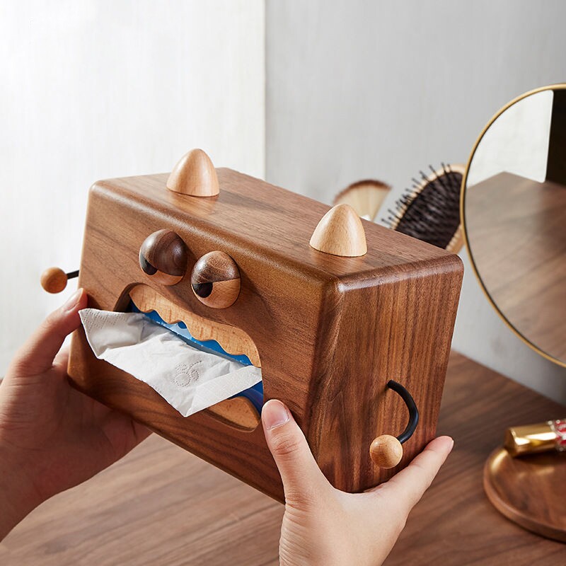 实木小怪兽纸巾盒黑胡桃木抽纸盒网红餐巾纸盒木质卡通收纳纸抽盒