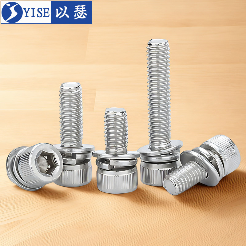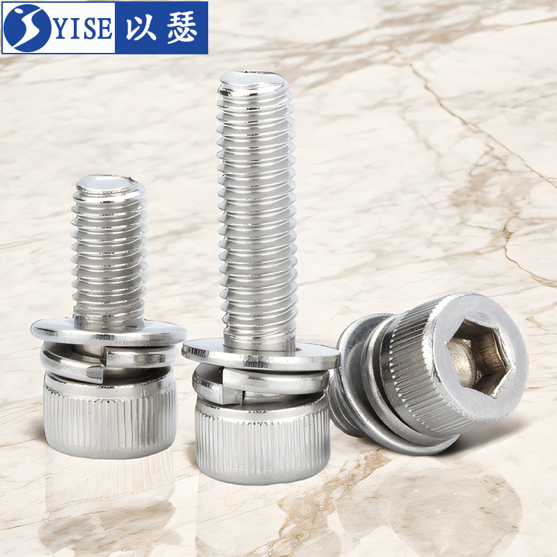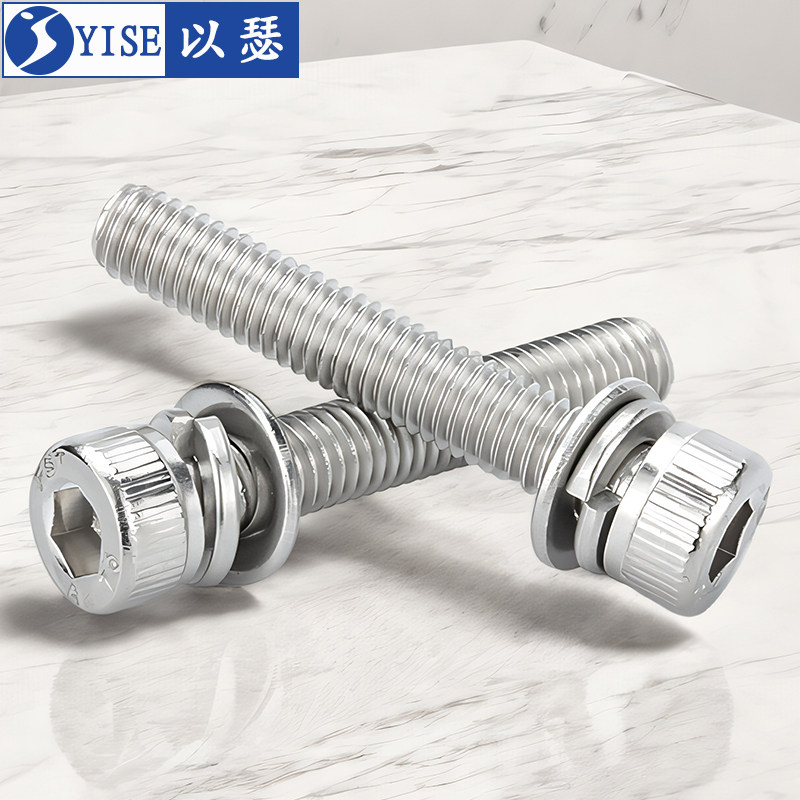 304不锈钢内六角三组合螺丝螺钉圆柱头带平弹垫片螺栓M3M4M5M6M8