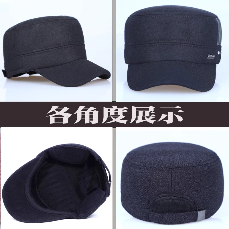 高档老人帽男户外保暖加厚平顶帽