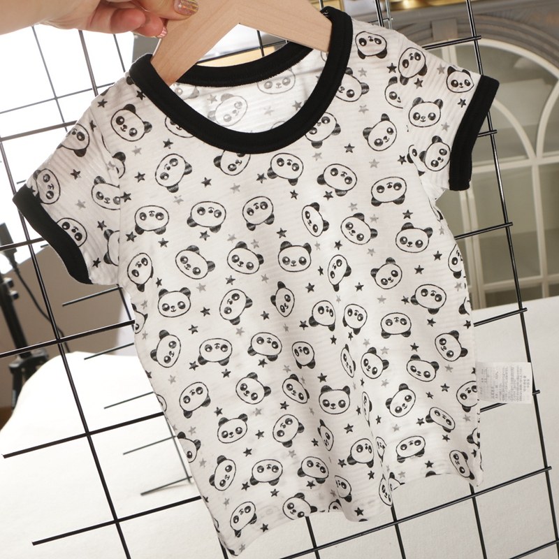 夏季透气吸汗全棉薄款中小男童宝宝衣服童装短袖T恤短裤家居熊猫