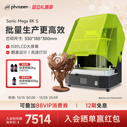Phrozen/普罗森SonicMega 8K S大尺寸光固化3d打印机高速打印15寸8k黑白屏滚珠丝杠43微米3d打印机