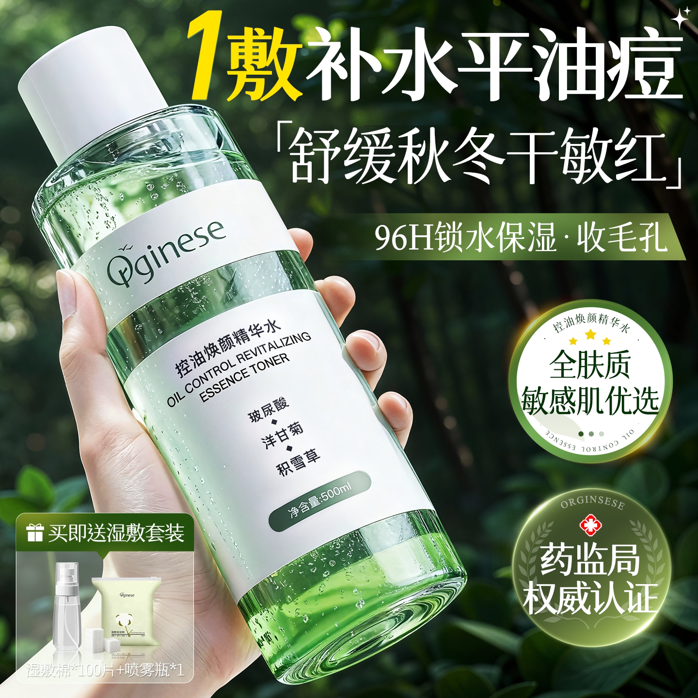 积雪草植萃控油祛痘爽肤水收缩毛孔去闭口湿敷水补水保湿护肤精华