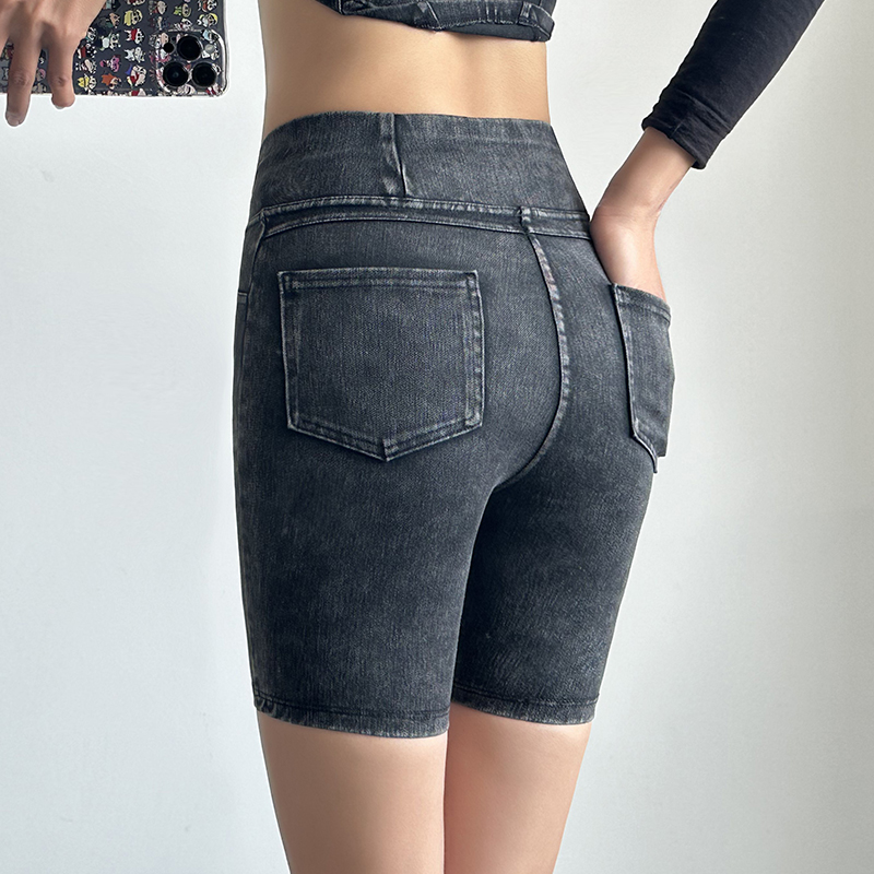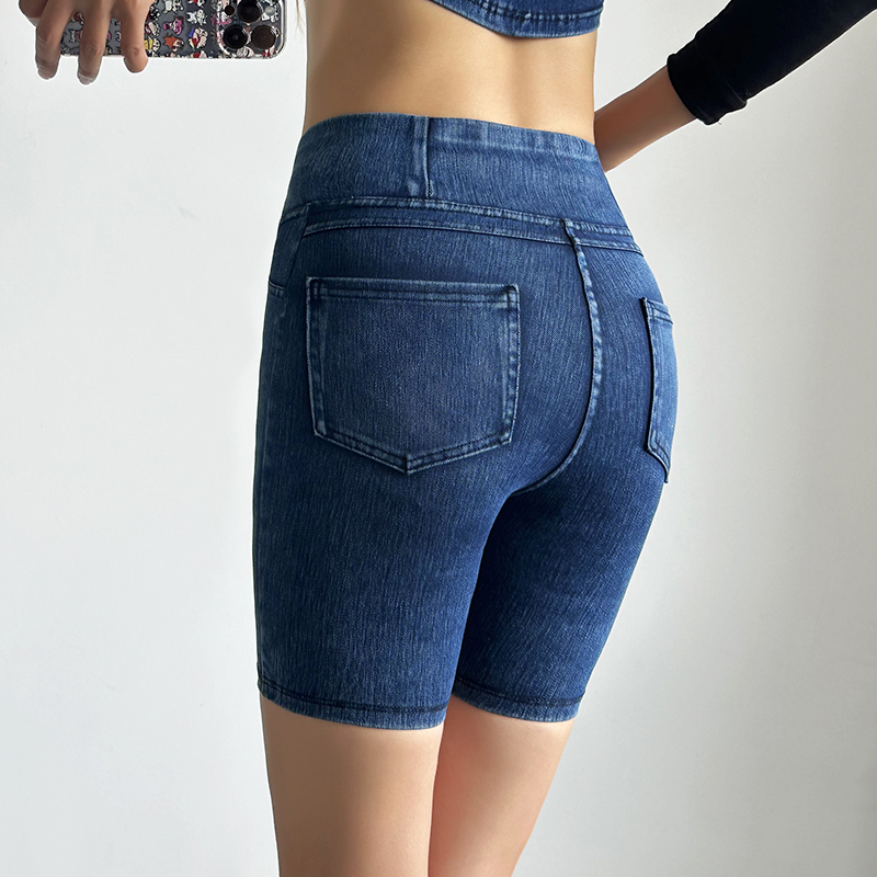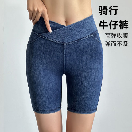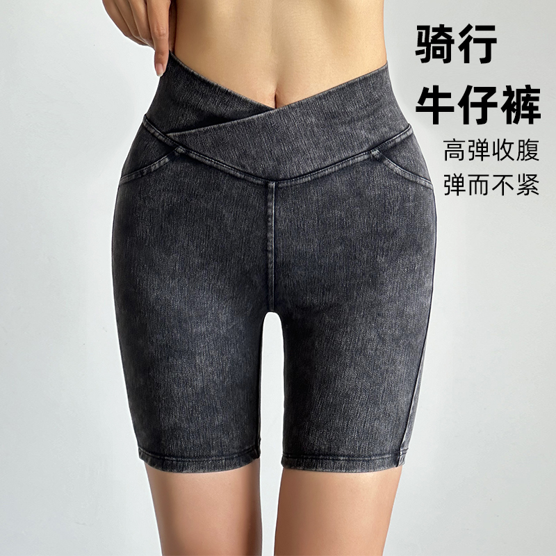 五分牛仔裤薄款夏女外穿收腹提臀高弹力紧身显瘦蜜桃臀运动健身裤