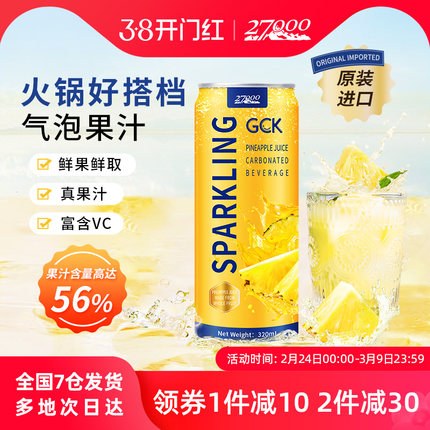 27000 GCK进口菠萝荔枝柠檬子气泡果汁汽水饮料0脂饮品320ml*12罐