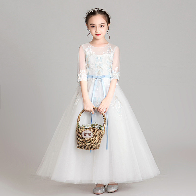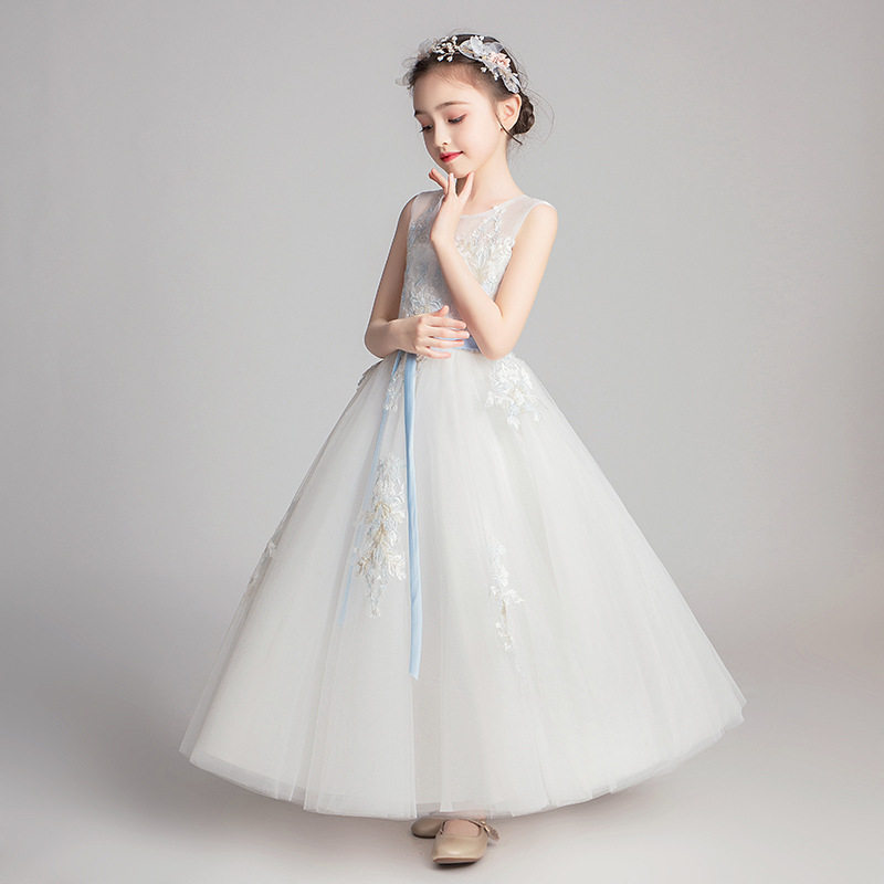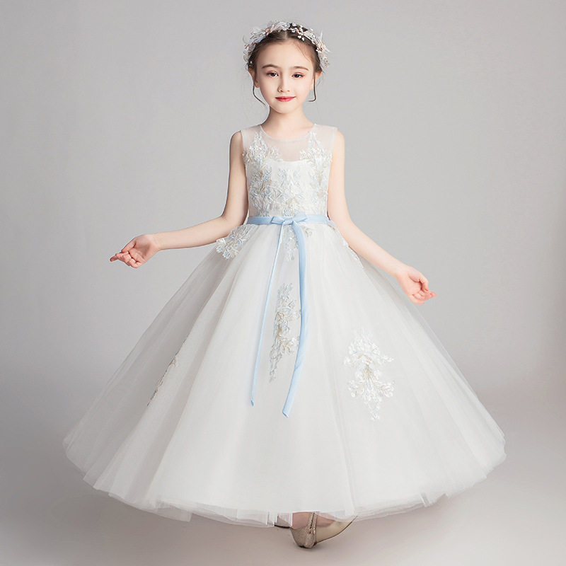 女童礼服公主裙生日小女孩花童婚纱儿童主持人钢琴演出服白色夏季