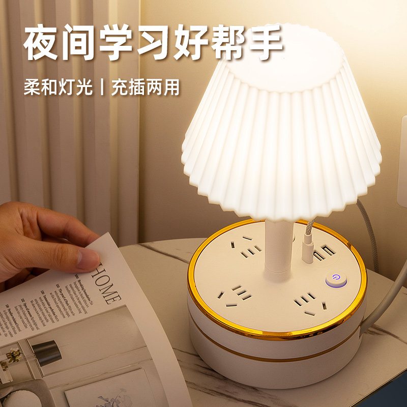 可伸缩收纳线台灯插座面板多功能USB插排插板家用学生宿舍插线板