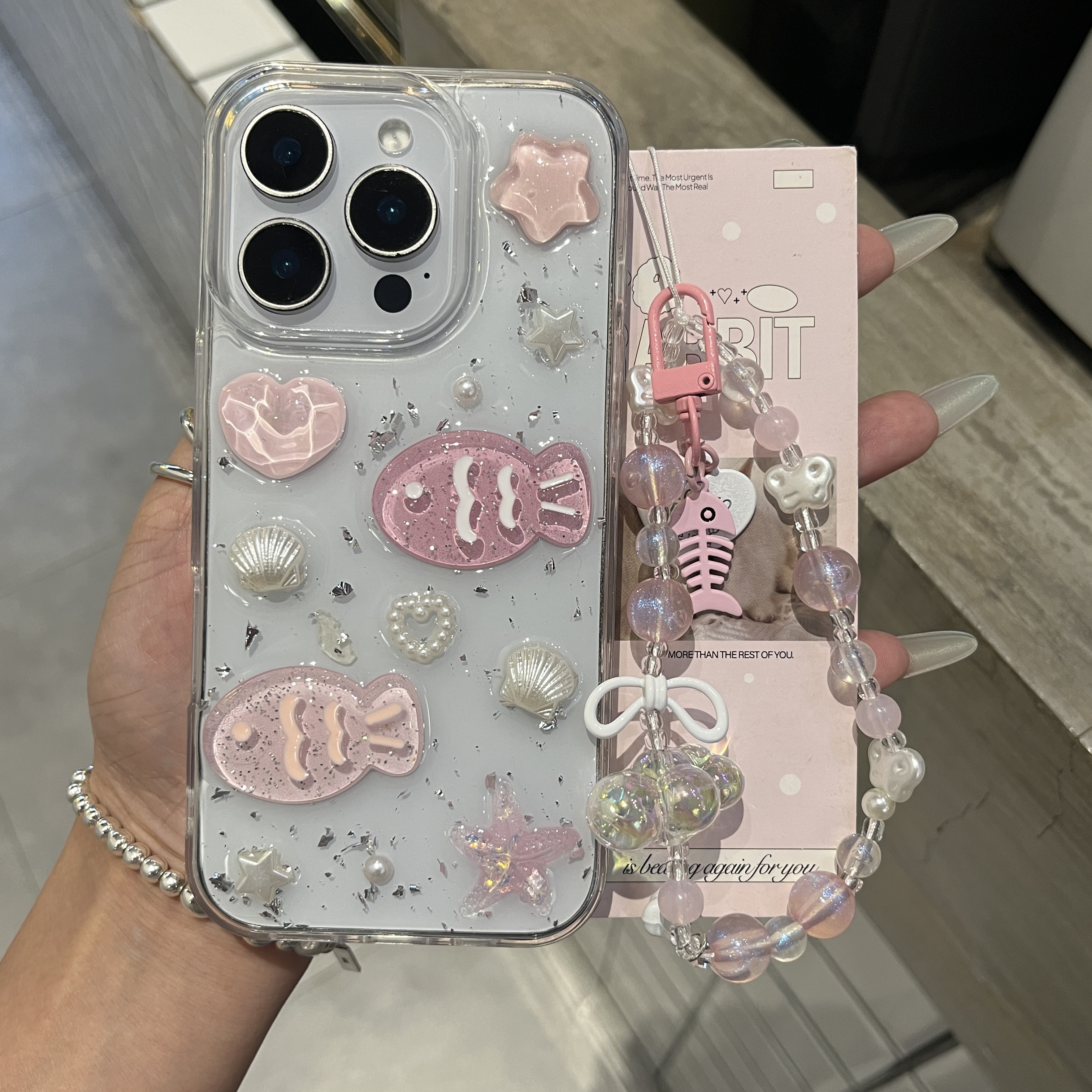 ins新款银箔粉色小鱼适用红米note15 14pro手机壳note13 12 11t链条K80 k70 k60软壳k50保护套turbo3 4pro女