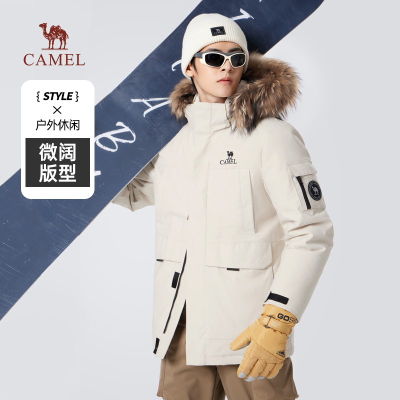 骆驼中长款羽绒服男女加厚冬2024新款防风防寒时尚保暖工装派克服