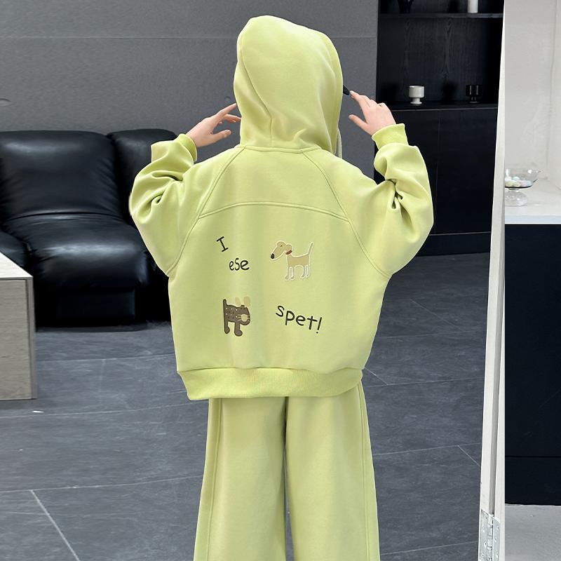 女童开衫套装2025新款春秋款儿童洋气休闲阔腿裤运动两件套中大童
