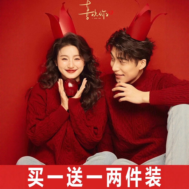 大码毛衣大红色男冬季纯色高级感针织衫麻花情侣装外套内搭苹果型