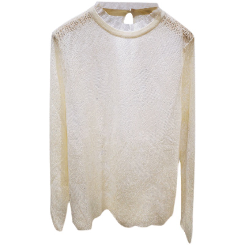 妖猪 蕾丝镂空打底衫女 新款 洋气白色立领内搭小衫上衣