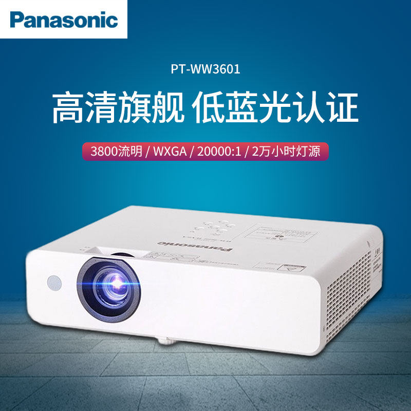 松下PT-WW3601投影仪3800流明高清宽屏商务办公会议教育家用卧室