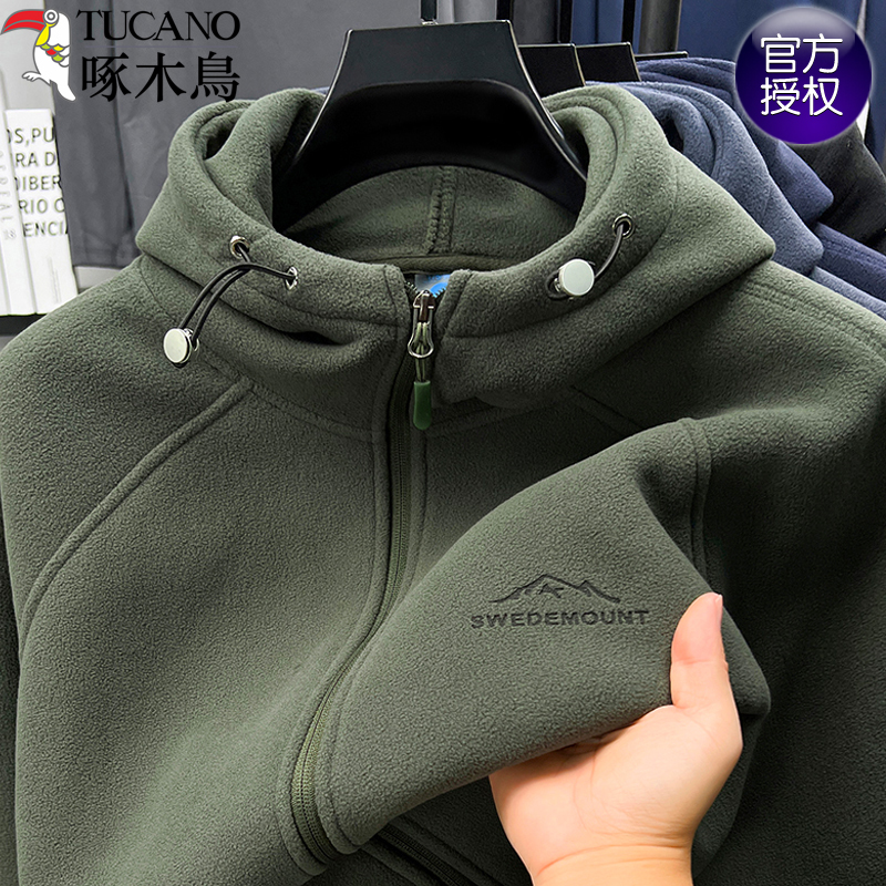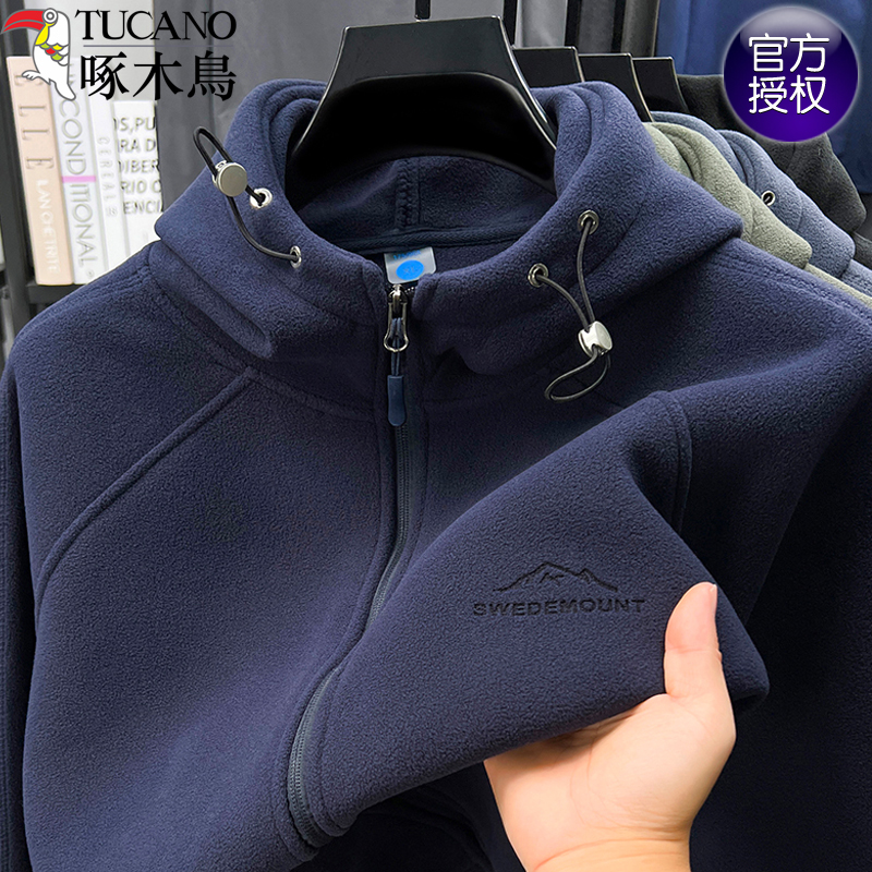 啄木鸟奥粒绒连帽卫衣男纯色夹克