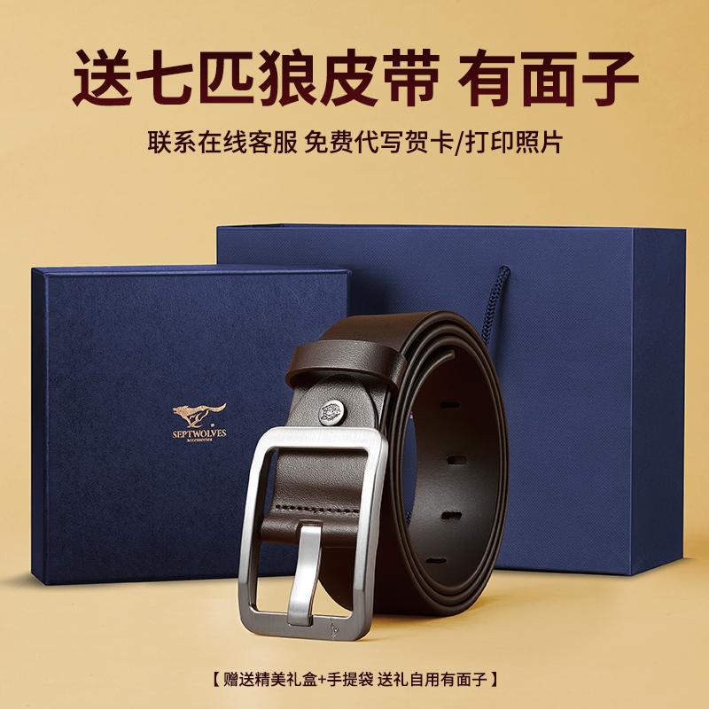 七匹狼腰带男士真皮时尚百搭牛皮针扣皮带纯正品高档裤带新款商务