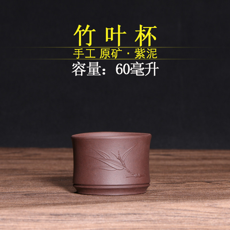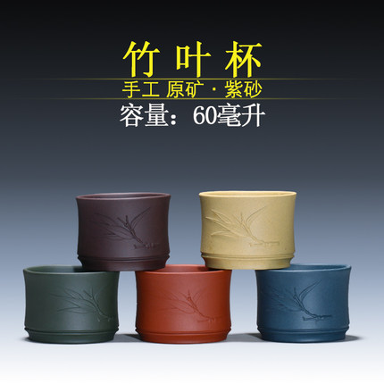 宜兴紫砂壶 原矿绿泥 清水泥竹叶杯 茶杯 60毫升