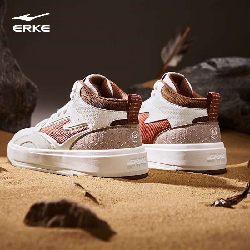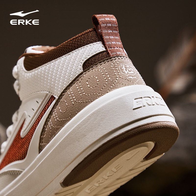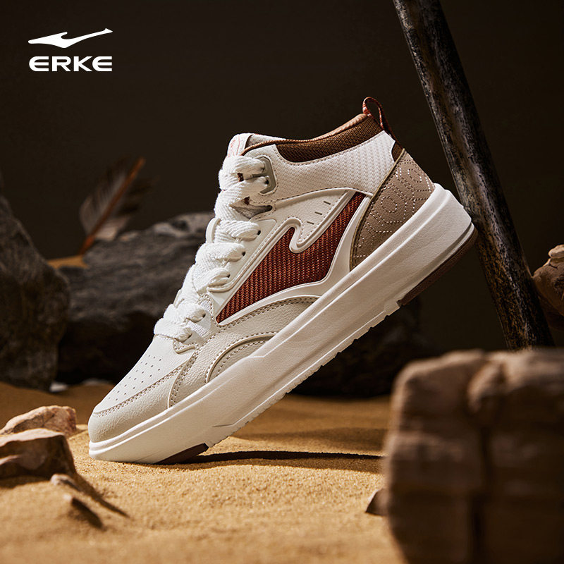 征服4鸿星尔克男鞋2026冬季新款红色皮面复古高帮软底休闲运动鞋