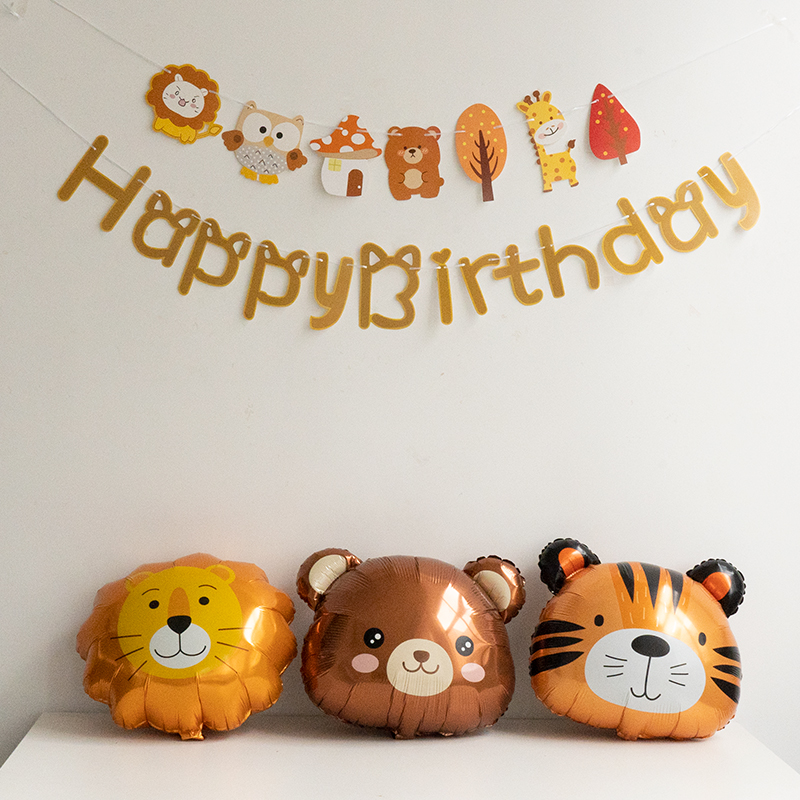 小动物系列儿童铝膜气球虎宝宝周岁生日场景装饰布置卡通气球