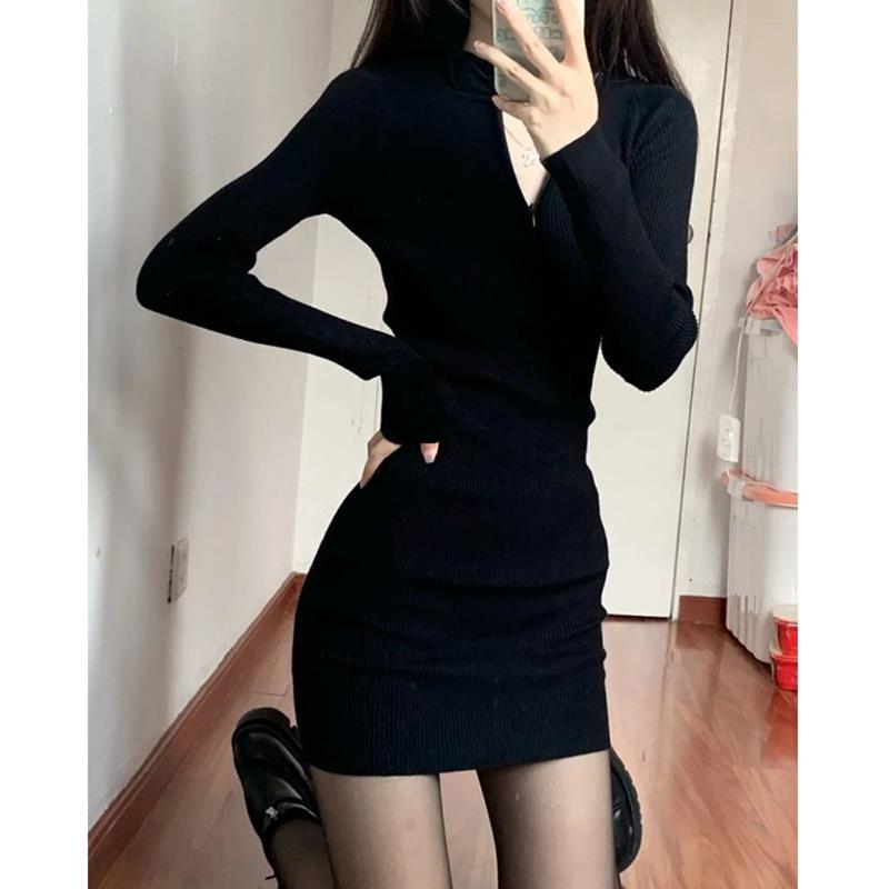 2025新款韩版大码胖妹妹长袖针织打底连衣裙女春秋冬新款显瘦性感