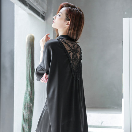 睡裙女夏季宽松性感薄款男友风白衬衫冰丝中长款春秋雪纺私房睡衣