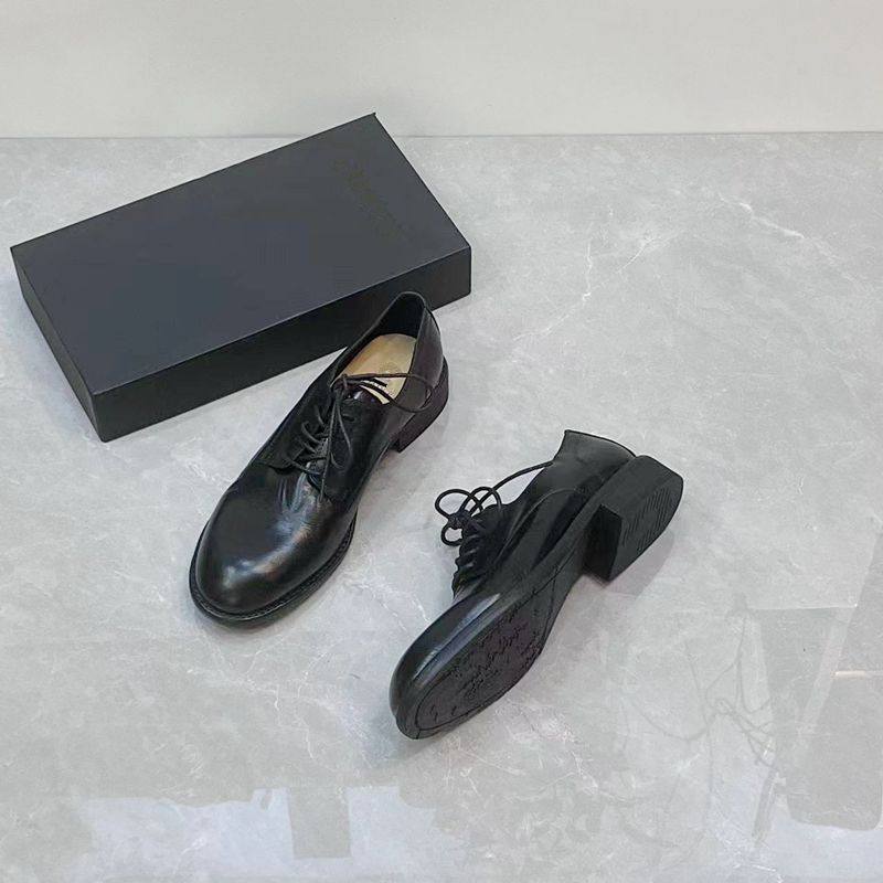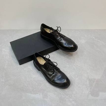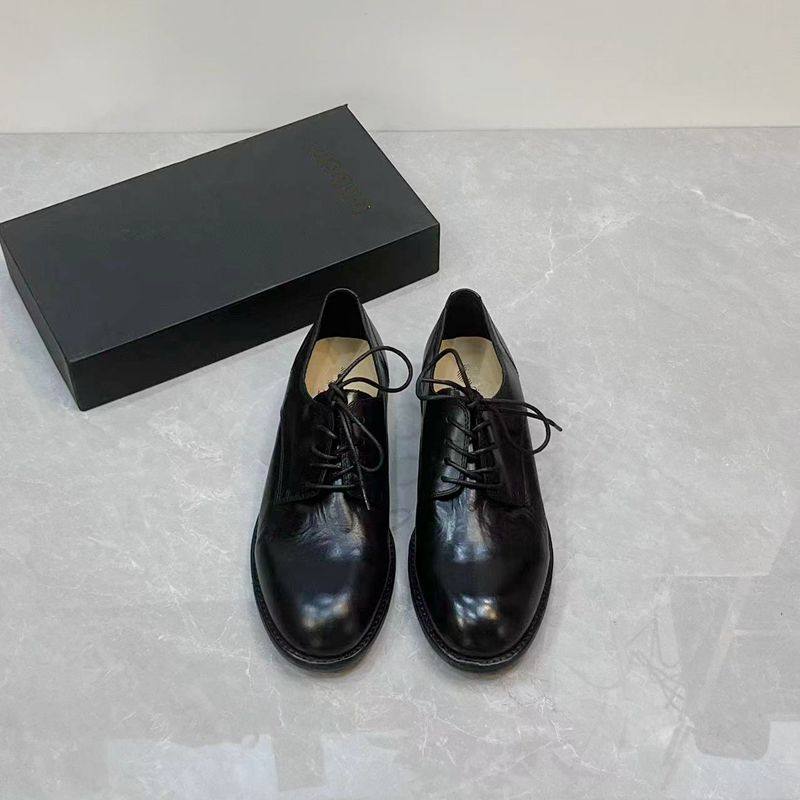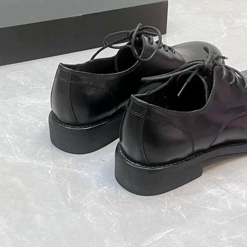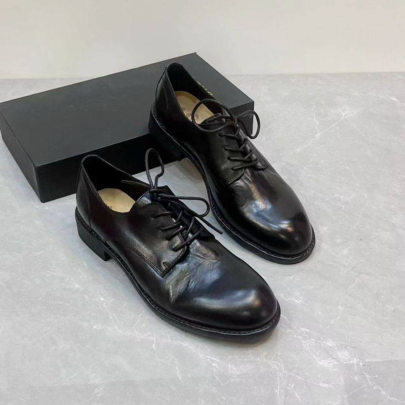 新款英伦风真皮圆头帅气小皮鞋粗跟通勤百搭系带马皮深口单鞋