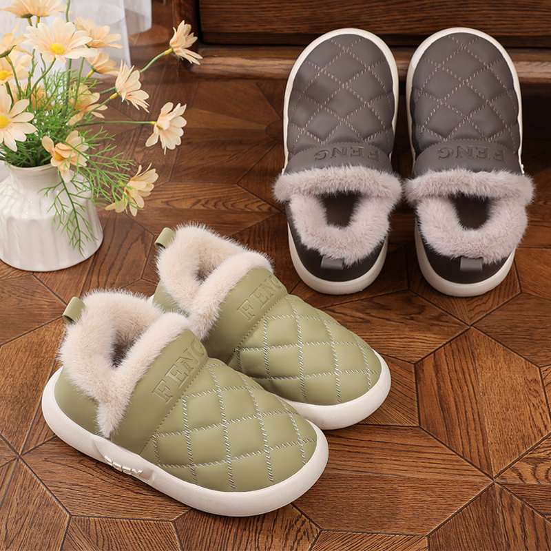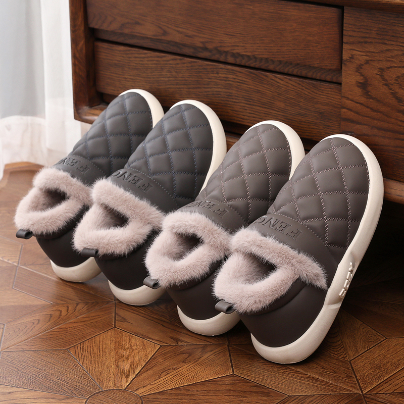 冬季加绒加厚包跟厚底棉鞋男女室内皮面防水防滑保暖拖鞋外穿棉鞋