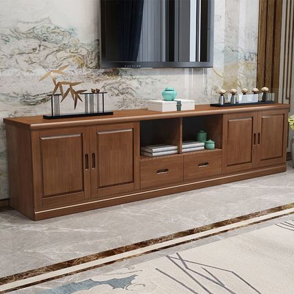 冠美瑞中式实木电视柜客厅2M/2.4米农村高款地柜储物柜家用影视柜