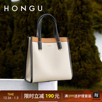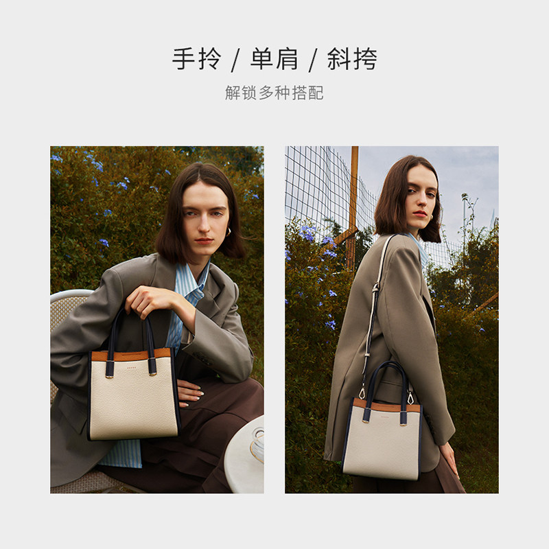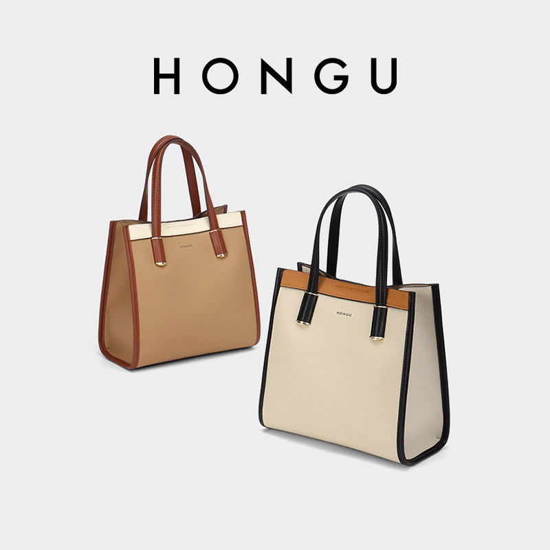 红谷包包撞色新款真皮单肩手提包时尚高级感琴谱包百搭斜挎女士包