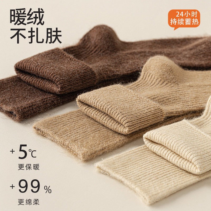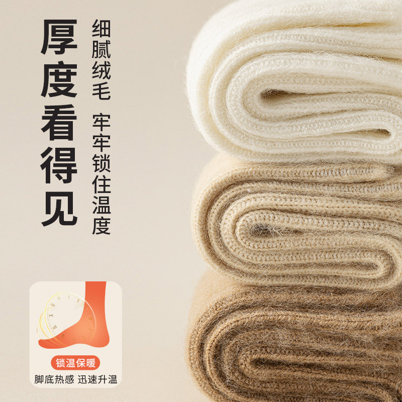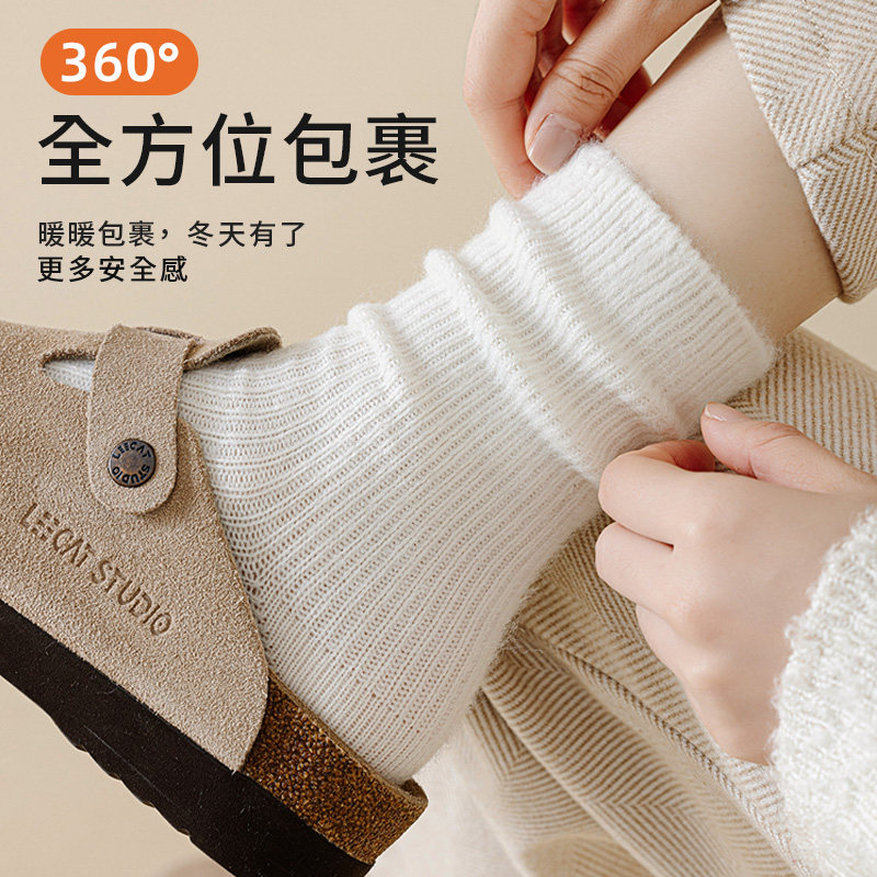 猫人袜子女款秋冬款中筒月子袜澳绒堆堆袜加绒加厚保暖长筒毛圈袜
