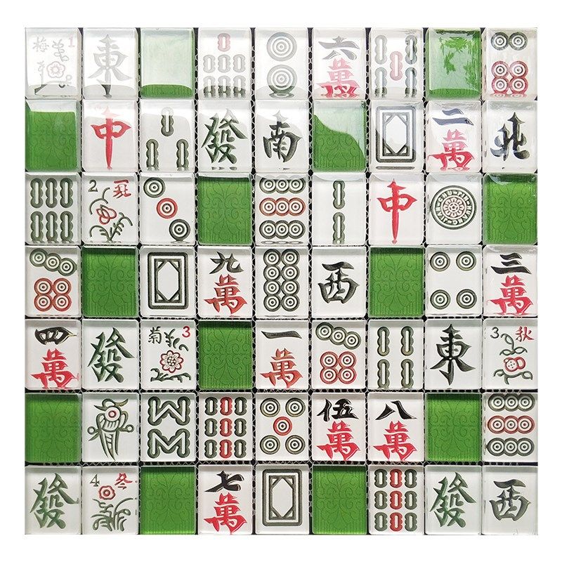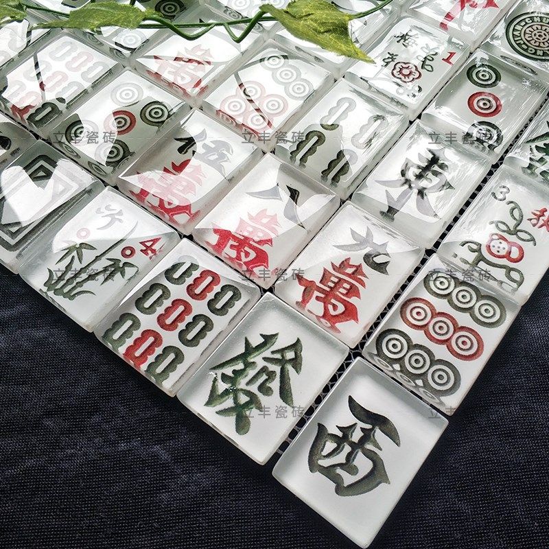现代港式茶棋牌室水晶玻璃马赛瓷砖背景墙麻将字