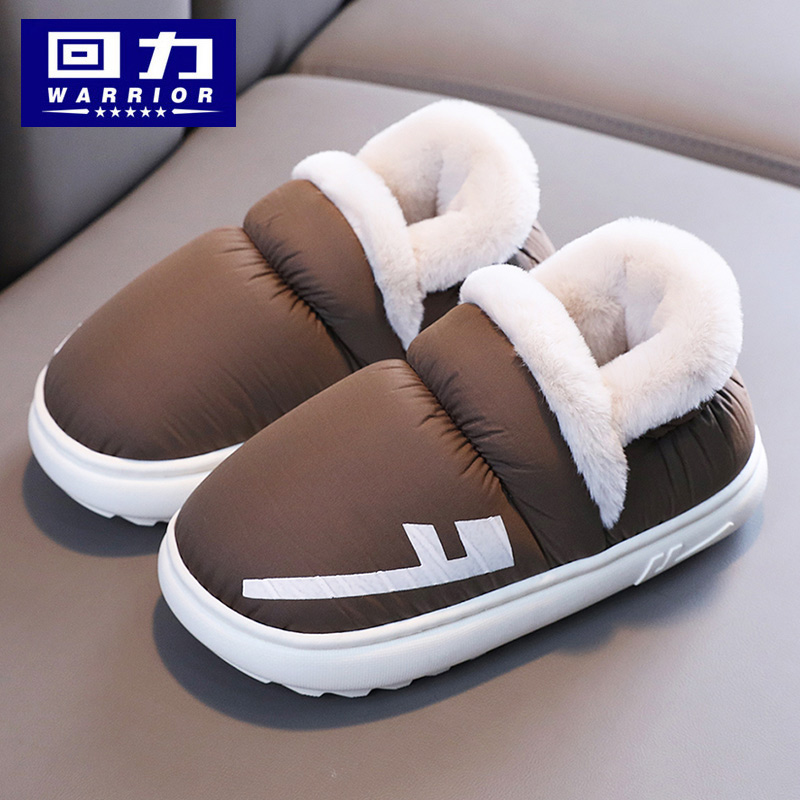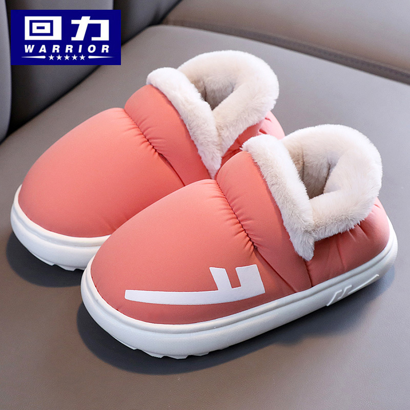 回力亲子棉拖鞋男冬季家居家用室内保暖厚底防水羽绒布月子棉鞋女
