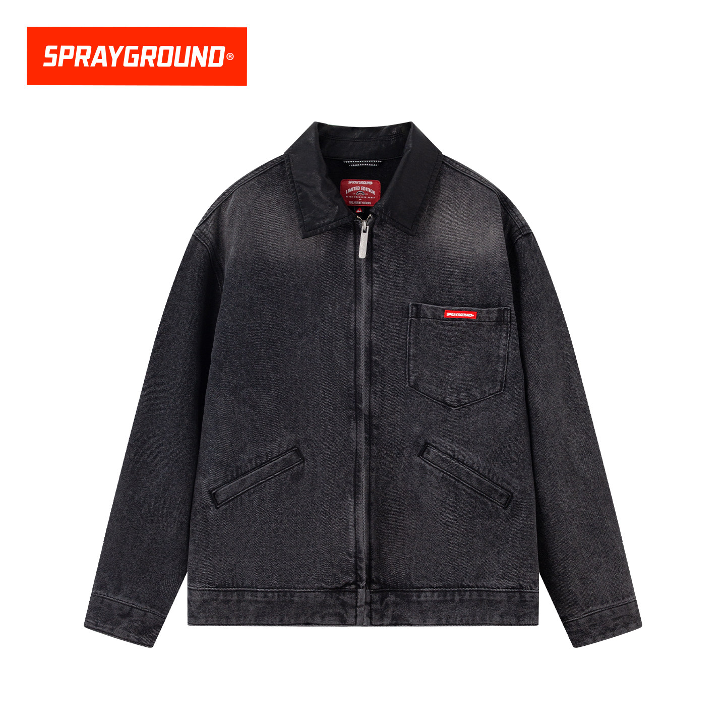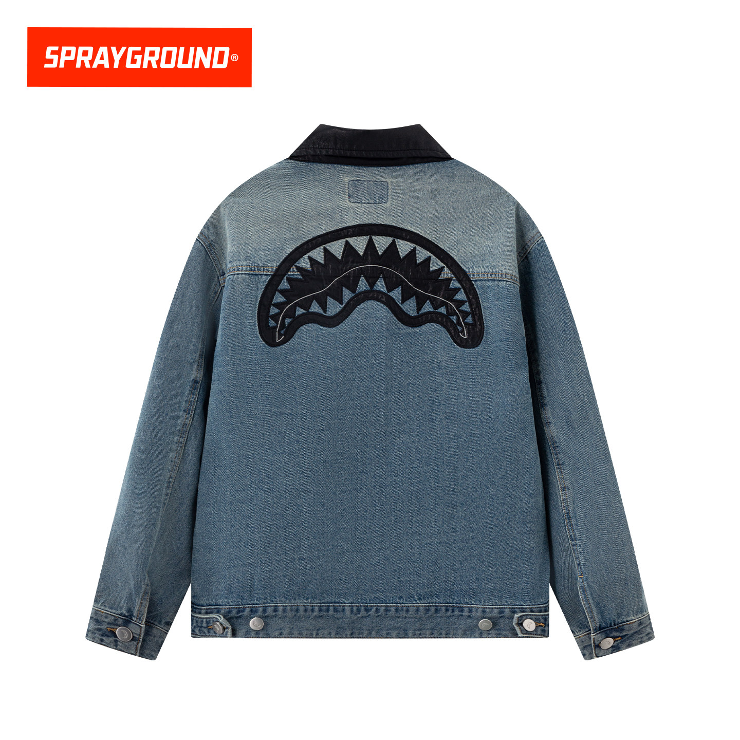 SprayGround鲨鱼嘴美式复古牛仔外套男26春新款翻领宽松夹克上衣