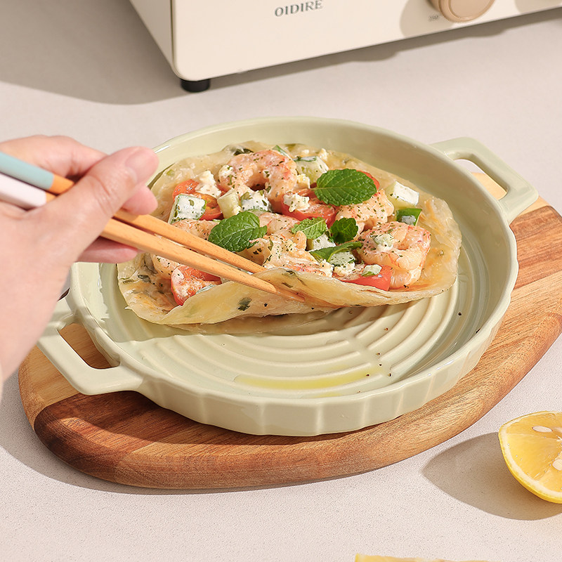 双耳盘微波炉专用盘子陶瓷烤盘烤箱用器皿空气炸锅碗沙拉水果盘碗