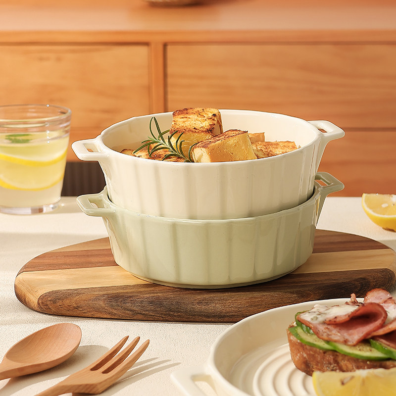 熊谷组陶瓷奶油风双耳烤盘