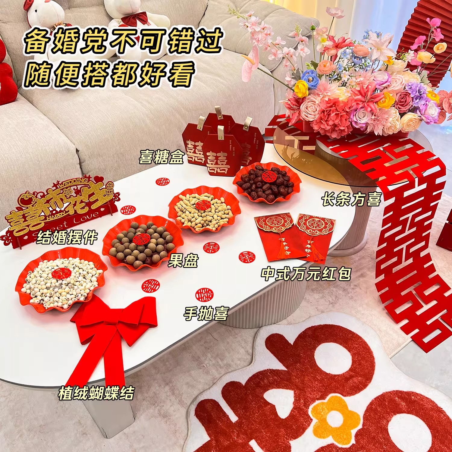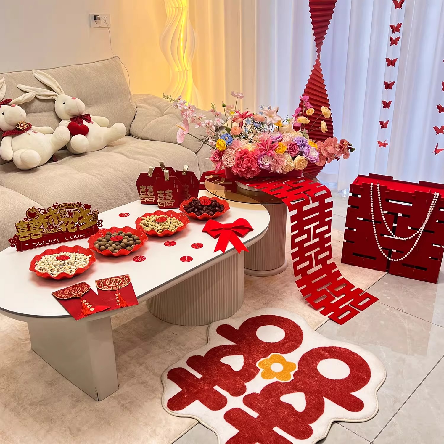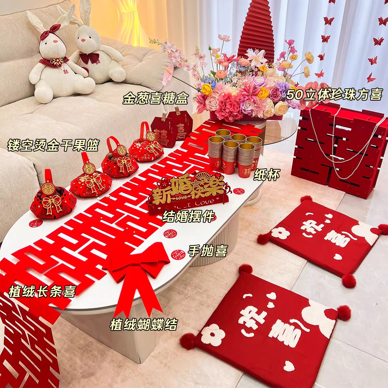 结婚装饰茶几喜字摆件套装布置婚房客厅男方女方婚庆用品大全卧室