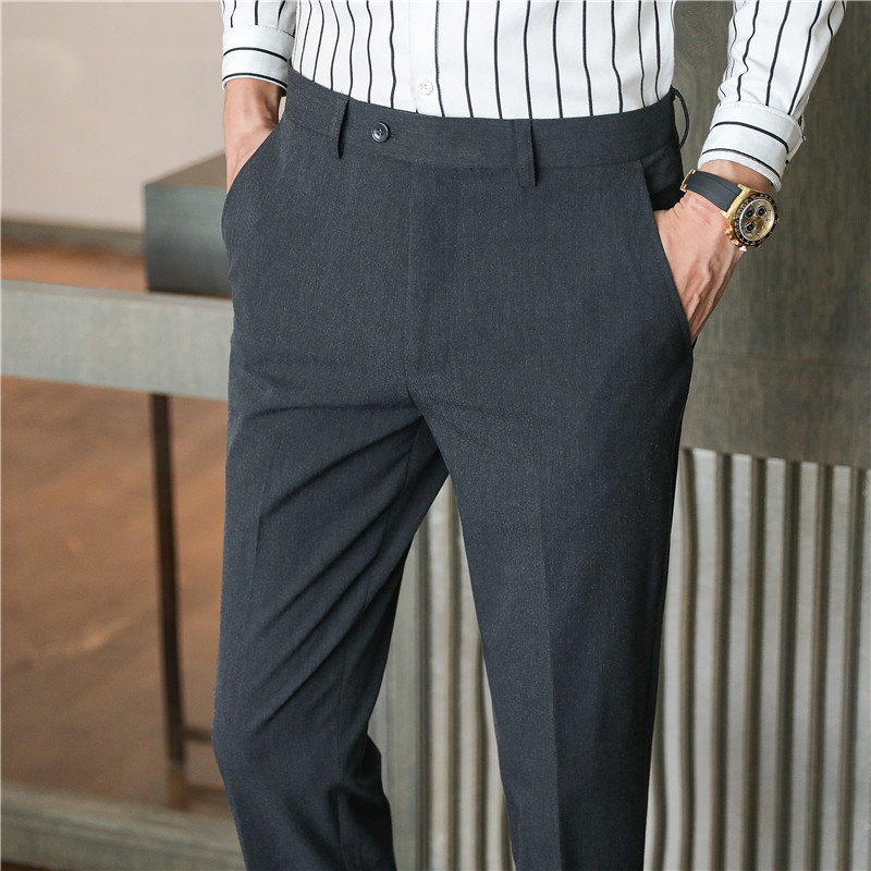 垂感弹力男士商务潮流修身西装长裤子休闲西服裤加绒直筒正装西裤