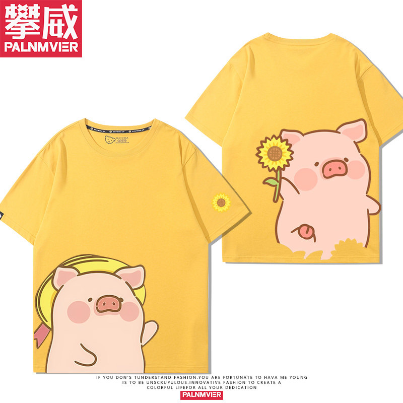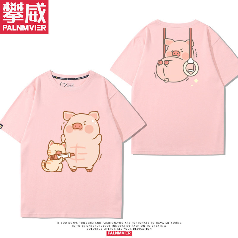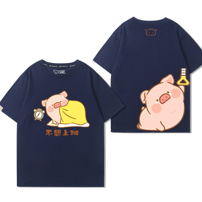 lulu粉色小猪可爱卡通猪猪周边短袖男女儿童2025年夏季宽松T恤衫